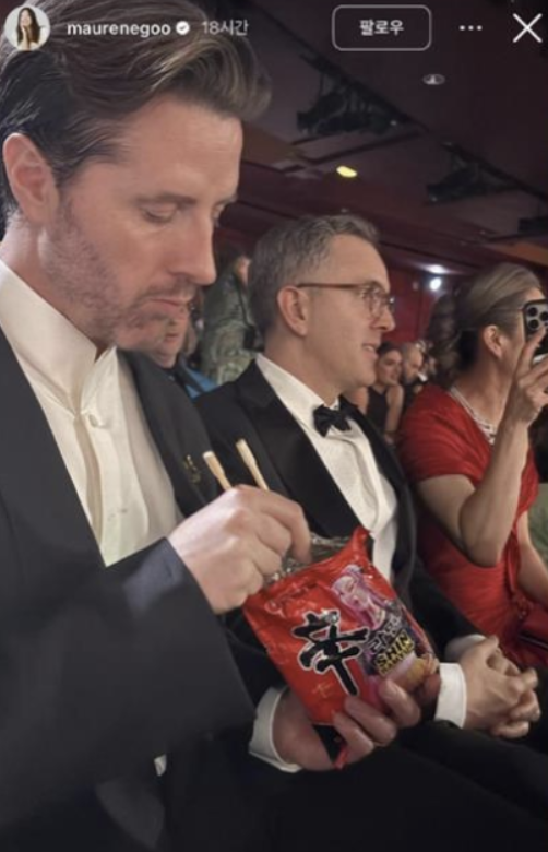 [이코노미스트 이지완 기자] 농심 신라면이 세계 최고 권위를 자랑하는 미국 아카데미(오스카) 시상식 무대를 밟았다. 한국계 메기 강 감독과 함께 넷플릭스 애니메이션 '케이팝 데몬 헌터스'(이하 케데헌)의 공동 연출을 맡은 크리스 아펠한스 감독이 현장에 신라면을 들고 나타나면서다.