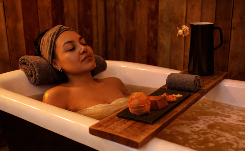 입욕 시에는 스파 전용으로 제조된 '스티키 데이츠 배쓰 밤'이 제공된다. 대추 시럽과 벤조인 레지노이드, 샌달우드를 함유해 피부 보습과 달콤한 향기를 동시에 제공한다. 여기에 욕조를 금빛으로 물들이는 시각적 요소도 더했다. 이어 '솝'과 '보디 스크럽'을 순차적으로 사용할 수 있도록 구성해 피부를 부드럽게 가꿀 수 있다.