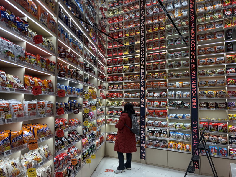 지난 3월 24일 오전 서울 중구 이마트24 ‘K-푸드랩 명동점’ 2층에 들어서니 눈앞에 거대한 ‘라면 벽’이 펼쳐졌다. K-푸드랩 명동점의 핵심인 ‘라면 아카이브(Archive) 월’이다. 이마트24는 2층 벽면 두 곳에 2.8m 높이 규모의 대형 진열대를 설치해 약 170종의 라면을 빼곡히 채웠다.