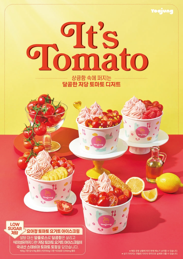 요아정 관계자는 “이번 저당 토마토 요거트 아이스크림은 최근 주목받고 있는 토마토 트렌드를 반영해, 누구나 익숙한 토마토를 요아정만의 프리미엄 디저트로 재해석한 메뉴”라며 “당 부담은 낮추고 풍미는 살린 제품으로, 기존에 없던 새로운 토마토 디저트 경험을 제공할 것”이라고 말했다.