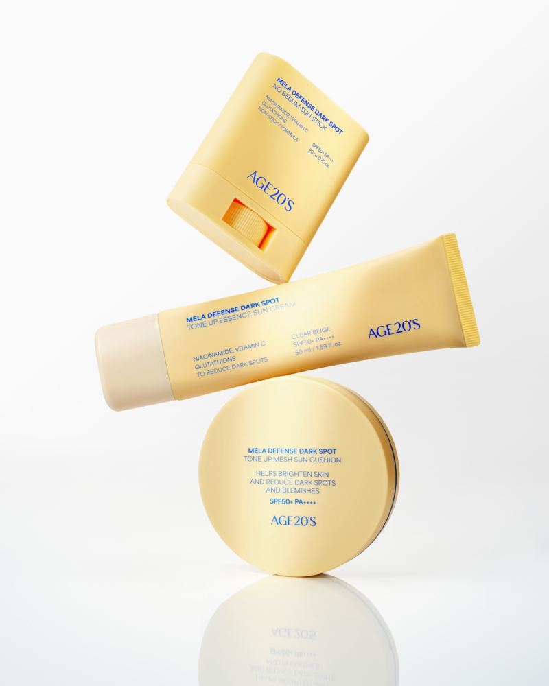 AGE20’S 멜라 디펜스 기미 선케어 3종은 글루타치온∙나이아신아마이드∙비타민C를 더한 ‘멜라 디펜스 캡슐’을 함유해 자외선이 남긴 기미의 흔적을 케어해 주는 자외선 차단제이다.