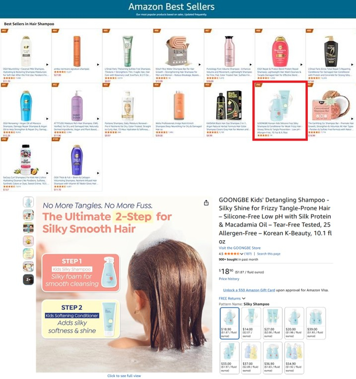 궁중비책의 어린이용 샴푸 및 컨디셔너는 지난달 25일부터 7일간 진행된 미국 아마존의 대형 할인 행사 ‘빅 스프링 세일(Big Spring Sale)’에서 헤어 카테고리 베스트셀러 100위권에 진입했다. K-뷰티 영유아 스킨케어 브랜드 가운데 유일하게 해당 카테고리에 이름을 올렸다. 또한 아마존에서 ‘키즈 샴푸’, ‘키즈 컨디셔너’ 검색 시 한국 브랜드 중 궁중비책이 대표적으로 노출되고 있다.