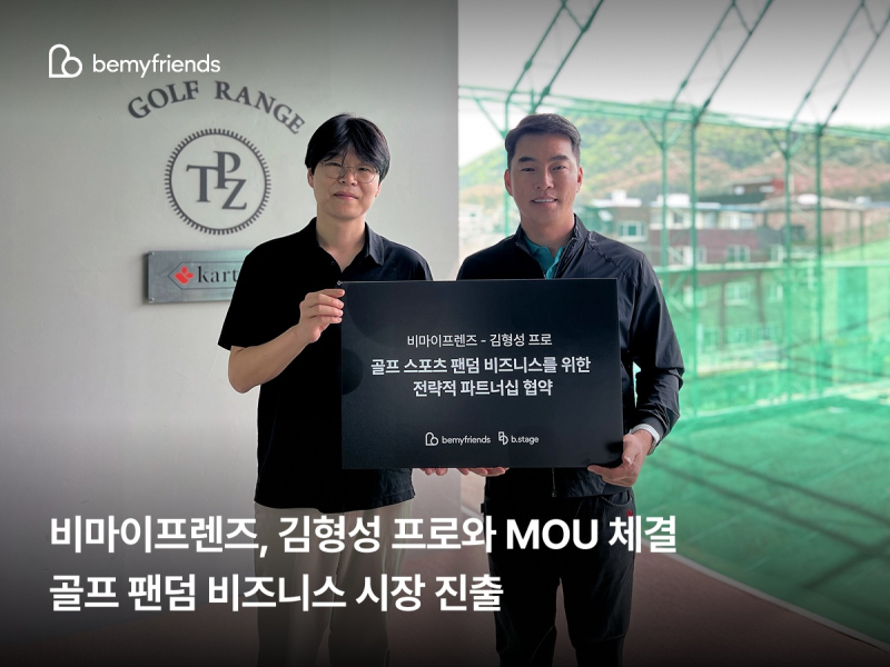 비마이프렌즈는 일본프로골프투어(JGTO)에서 활약해온 김형성 프로와 업무협약(MOU)을 체결했다고 17일 밝혔다. 이번 협약을 통해 골프 선수 중심의 팬덤 플랫폼을 구축하고, 멤버십 기반 비즈니스 모델을 본격화할 계획이다.