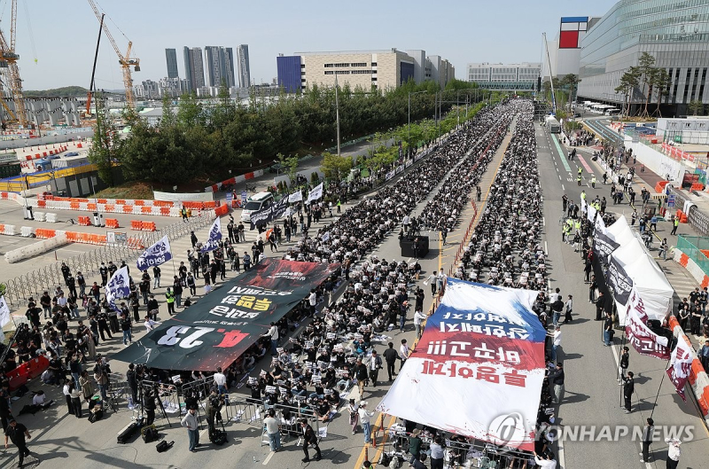 27일 업계에 따르면 삼성전자 노조는 지난 23일 경기 평택캠퍼스 집회 당일 야간 시간대 파운드리 부문 생산 실적이 58.1%, 메모리 부문은 18.4% 감소했다고 주장했다. 집회 참석 여파로 생산 차질이 발생했다는 설명이다. 노조는 총파업이 현실화될 경우 설비 복구 비용 등을 포함해 30조원 이상의 피해가 발생할 수 있다고 압박하고 있다.