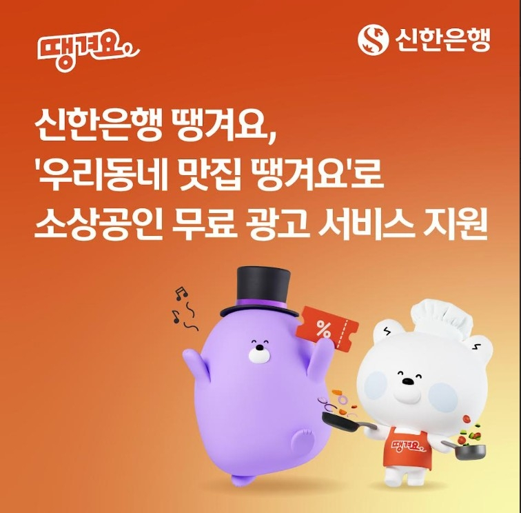 신한은행 '우리동네 맛집 땡겨요' 소상공인 무료 광고 지원