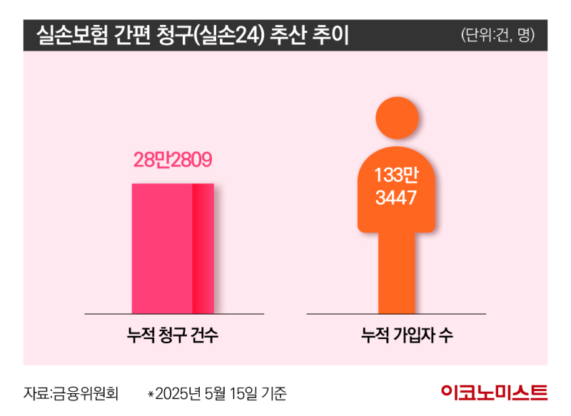정부가 운영하는 소비자 전용 플랫폼 ‘실손24’의 이용도 빠르게 확산되고 있다. 금융위원회에 따르면 2025년 5월 15일 기준 실손24의 누적 청구 건수는 28만2809건, 누적 가입자 수는 133만 명에 달한다. 앱 누적 가입자는 최근 172만명으로, 전체 실손보험 가입자(약 4000만명)의 5% 수준이다. 아직 절대적인 비중은 낮지만 시행 초기 대비 확산 속도는 빠르다는 평가다.